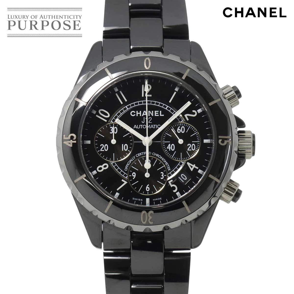 シャネル J12 41mm クロノグラフ H0940 メンズ 腕時計 デイト ブラック セラミック オートマ 自動巻き ウォッチ 90310616 【中古】時計