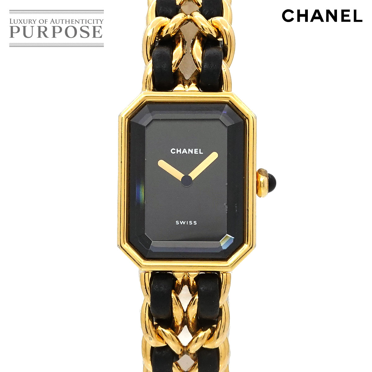 シャネル CHANEL プルミエール S 腕時計 時計 GP(ゴールドメッキ) レザー レディース ブラック系 H0001 【中古】