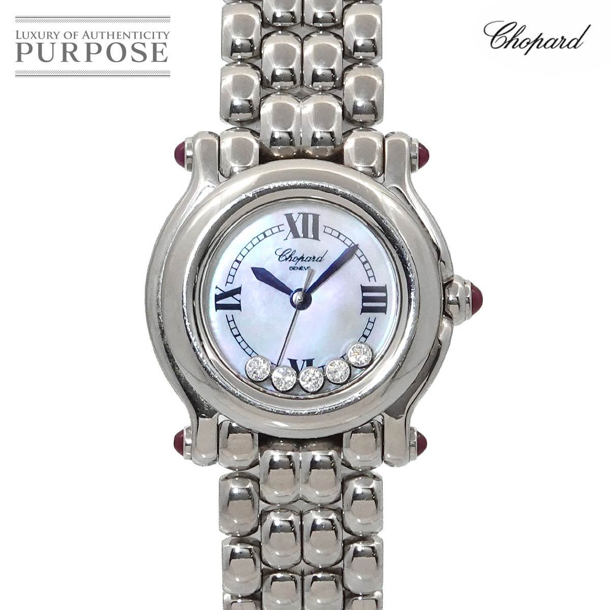 ショパール 時計 レディース Chopard ハッピースポーツ ブロッサム 8509 クォーツ SS ステンレススチール レザー ホワイトシェル 軽仕上