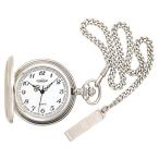 表側に蓋が付いたクォーツ式ハンターケースタイプの懐中時計。取り外しが可能なチェーン付き。