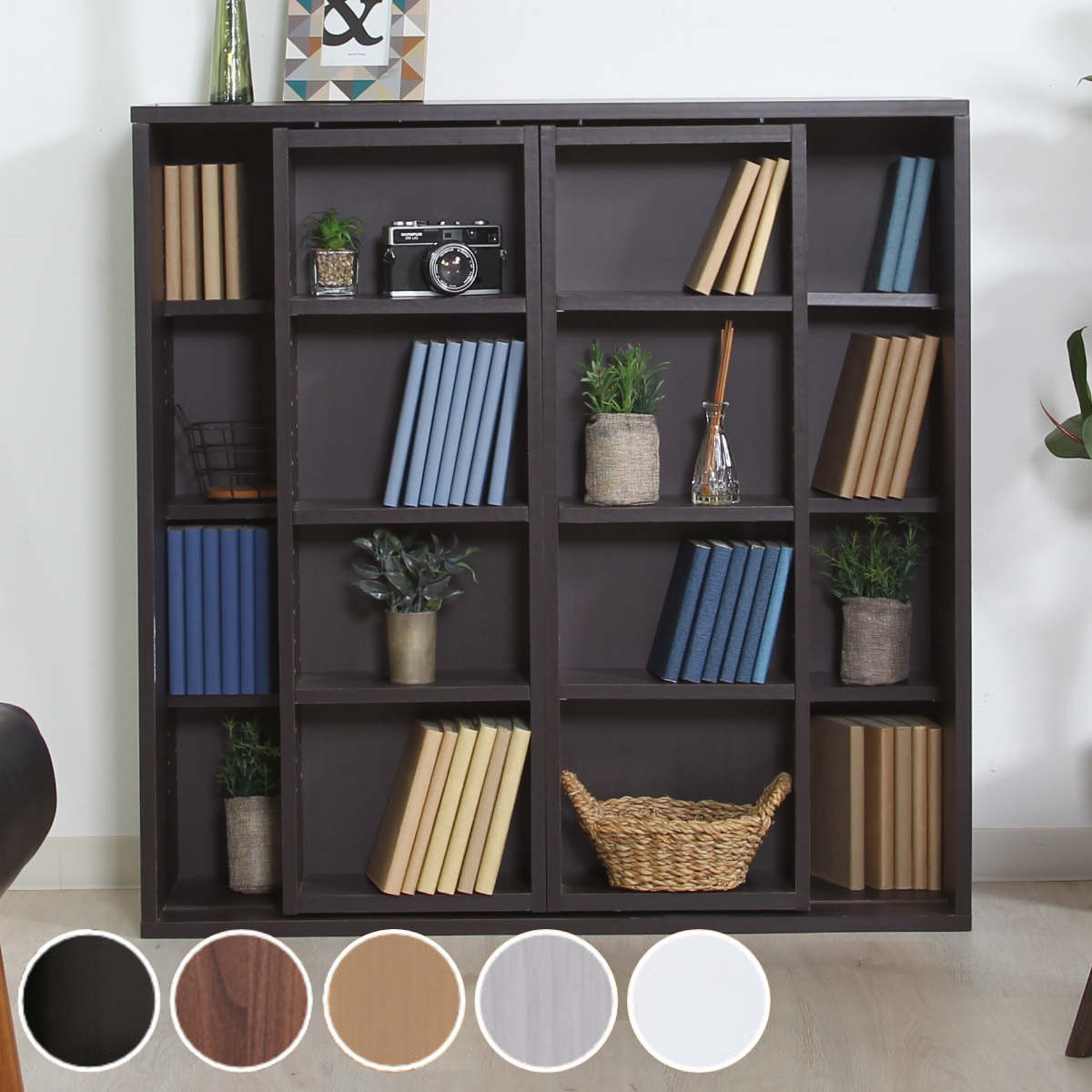 H-001 1×6/D22 木目サイズ:約幅262 奥行き220 高さ1460 mm材質:プリント化粧合板カラー:8色棚板耐荷重:10kg棚板の厚み:20mm可動棚板4枚連結金具、転倒防止金具付き※背...