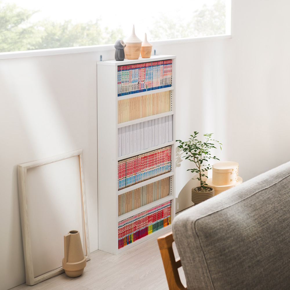 細かな棚調節で効率収納できる スマート薄型本棚 ロータイプ 高さ117cm幅60cm奥行15cm 本棚 ラック シェルフ コミックラック 627839
