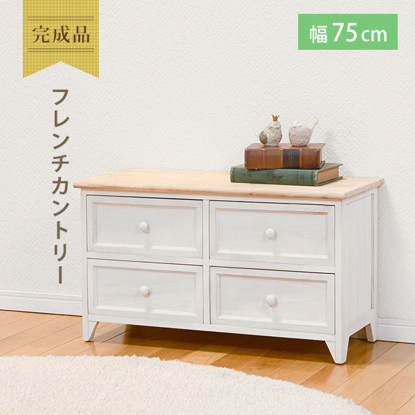 シャビーホワイトの本体にアンティーク調ナチュラルな天板が映える、シンプルチェスト。