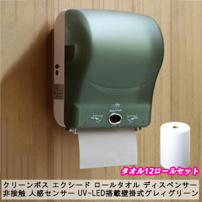 ●クリーンボス エクシード ロールタオル ディスペンサー【本体+ペーパータオル12本セット】 非接触 人感センサー UV-LED搭載壁掛式 グレ