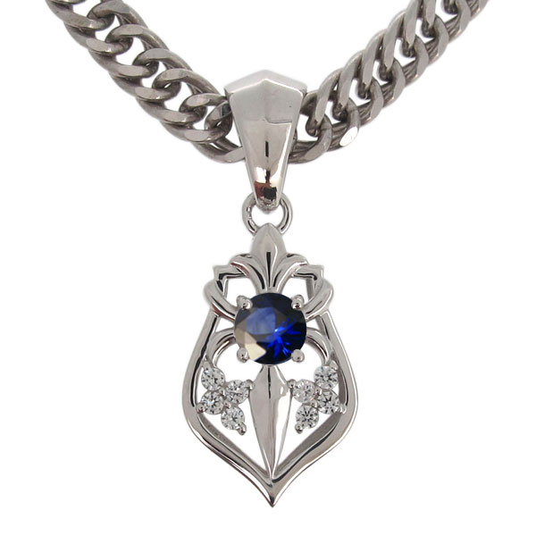 9月誕生石サファイアを使用したシルバー製の、百合の紋章デザインメンズネックレス(ペンダント)です。 ※【カラー3色の中から】お選び頂けます。 ■本体素材:シルバー925(ホワイトコーティング/イエロー...