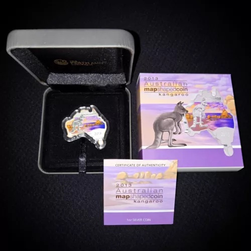2013 オーストラリア カンガルー マップ型 $1 AUD 1オンス シルバー OGP (カプセル + CoA + ボックス)