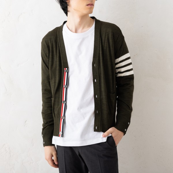 ●商品名:トムブラウン カーディガン ボレロ グリーン メンズ THOM BROWNE MKC002A Y1014 322 4 BAR CLASSIC V NECK CARDIGAN DARK GRE...