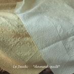 シャビーシックなブティ風のキルト。(表裏同柄)クラシックなダマスク模様の刺しゅうが美しい、高級感のあるお品です。【サイズ】約140cm x200 cm 厚み約0.7cm 重さ約1.5kg(手作りの為、...