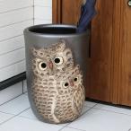 傘立て 陶器 信楽焼 おしゃれ フクロウ 傘入れ モダン シンプル 玄関 和風 新築祝 ギフト 開店祝 透かし彫り(黒)ふくろう傘立て kt-0231