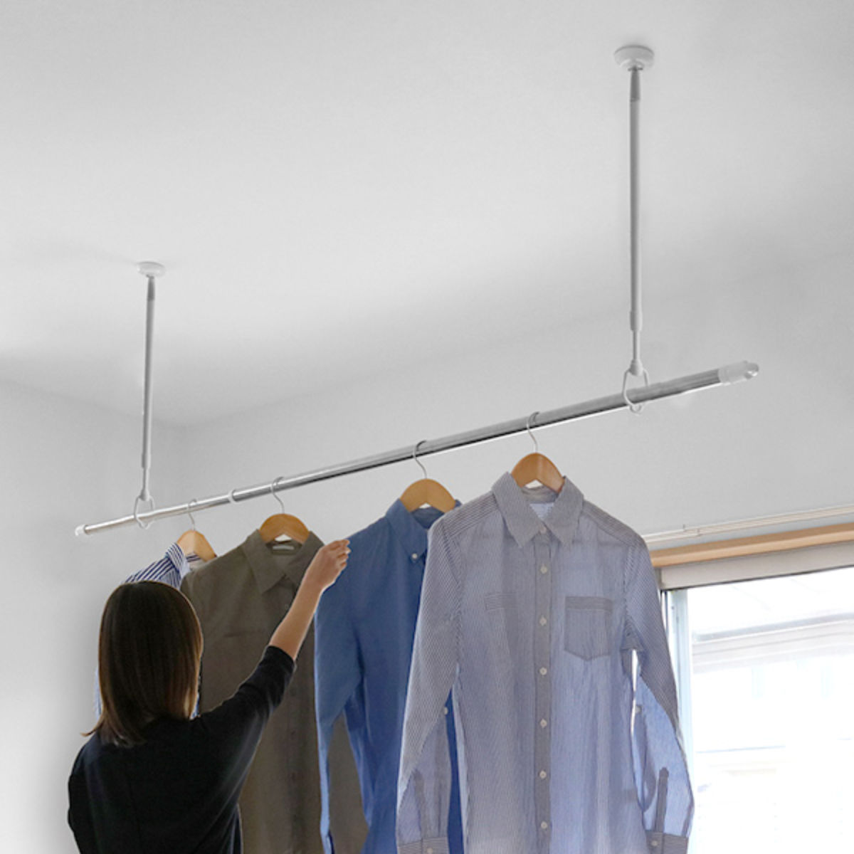 室内物干しハンガー 突っ張り物干しハンガー 物干しハンガー 部屋干しハンガー 薄型 突っ張り式 折り畳み タオルハンガー 洗濯グッズ シンプル おしゃれ 新生活