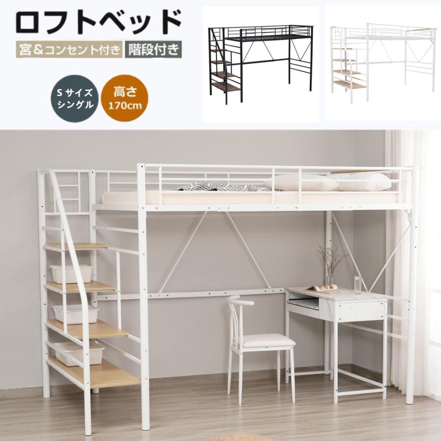 ロフトベッド ハイベッド シングルベッド 天然木とスチールを合わせたデザインロフトベッド 低めの設計