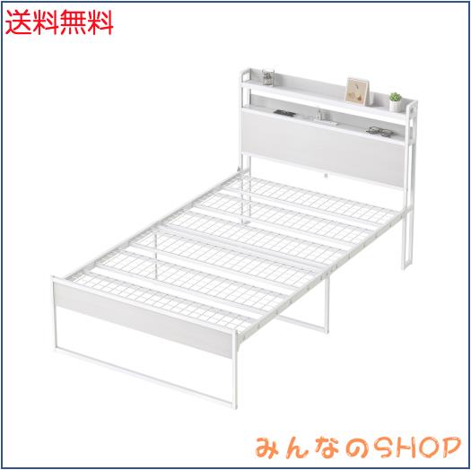 2口コンセント宮棚付き ローベッド ベッドフレーム シングルベッド/セミダブルベッド ロボット掃除機OK 静音パイプベッド スチール 連結 フレームのみ