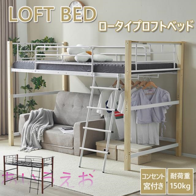 【今夜限定特価】ロフトベッド ロータイプ ロフトベット ミドル 子供 大人用 パイプベッド シングル 宮 コンセント付き ハンガーポール 収納 頑丈 ロフト