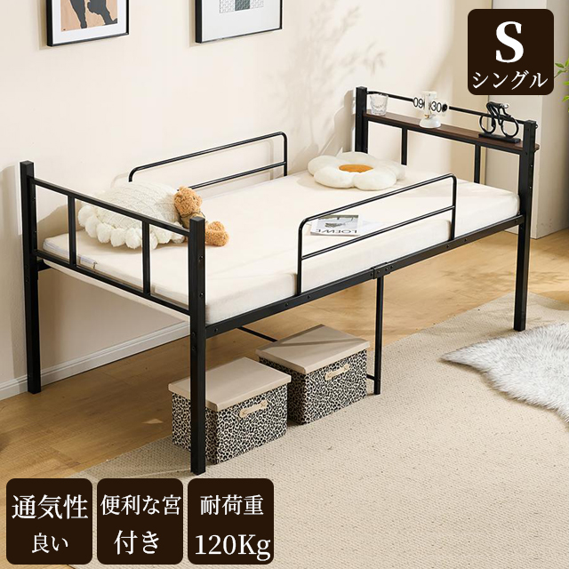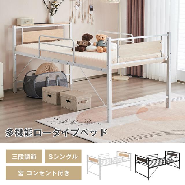 ロータイプベット シングルベッド ベッドフレーム パイプベッド 宮付き ベッド シングル 下収納 たっぷり収納可能 スチール 子供ベッド