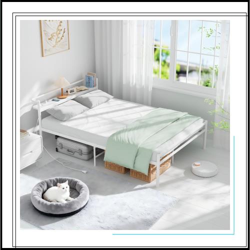「選べる特典付き」2口コンセント ベッドフレーム 宮棚付き パイプベッド 高耐荷重 収納付きベッド スチールベッド カビ防止 アイアンベッド シングルベッド セミダブルベッド 脚付き フレームのみ 頑丈...