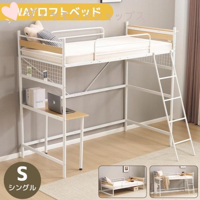 ロフトベッド パイプベッド シングル ベッド デスク付 シングルベッド 2段ベッド 木 収納 北欧風 子供部屋 送料無料 スチール 耐震 ベッド