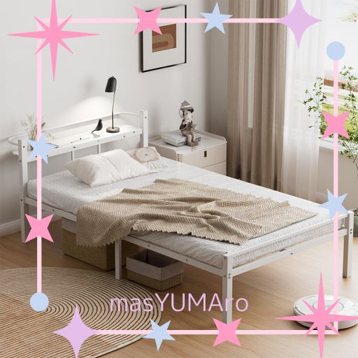 「選べる特典付き」2口コンセント ベッドフレーム 宮棚付き パイプベッド 高耐荷重 収納付きベッド スチールベッド カビ防止 アイアンベッド シングルベッド セミダブルベッド 脚付き フレームのみ 頑丈...