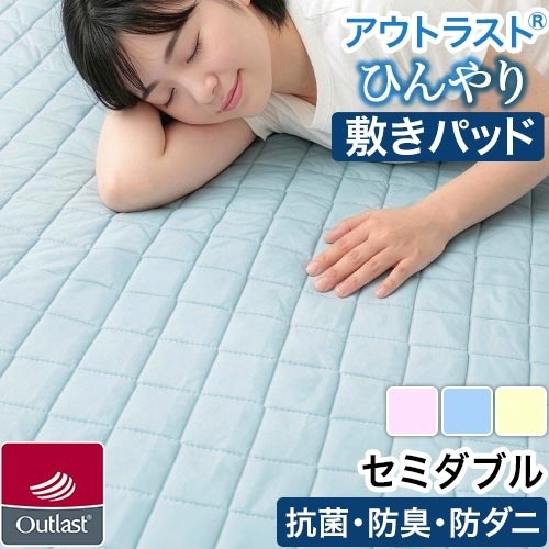 アウトラスト 接触冷感素材 敷きパッド セミダブル 防ダニ クールマット ひんやり パッドシーツ 春 夏 ベッドパッド オールシーズン キル