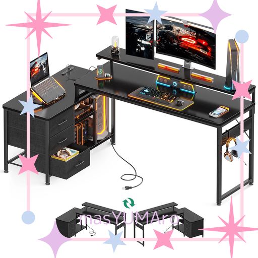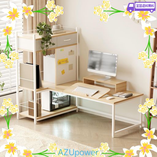LVB パソコンデスク ロータイプ ローデスク ゲーミング PCデスク L字デスク 学習机 勉強机 木製 収納付き 引き出し付き 棚付き モニター