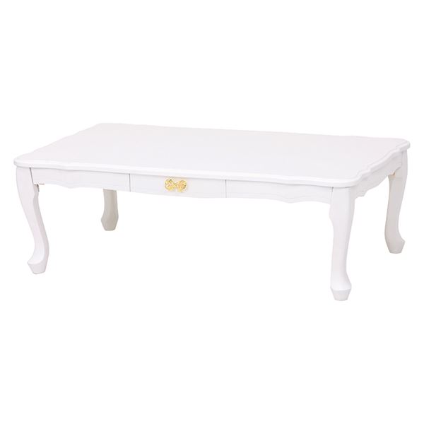 猫足折りたたみテーブル/ローテーブル 〔長方形/幅100cm〕 ホワイト 木製 姫系 引き出し付き 【北海道・沖縄・離島配送不可】