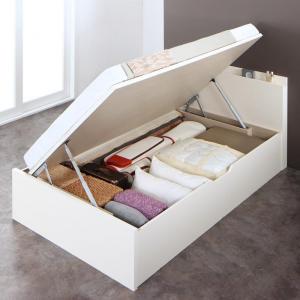 跳ね上げ収納ベッド シングル 縦型 ベッドフレーム 深さ30cm ガス圧式収納ベッド ウッドスプリング 棚付き コンセント付き