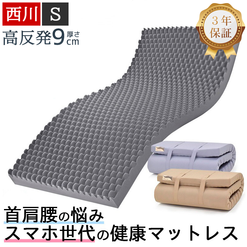 西川 マットレス 高反発 シングル 硬め 厚さ9cm 折りたたみ 敷布団 ウェーブコンフォート 155N 健康マットレス 体圧分散マットレス 体圧