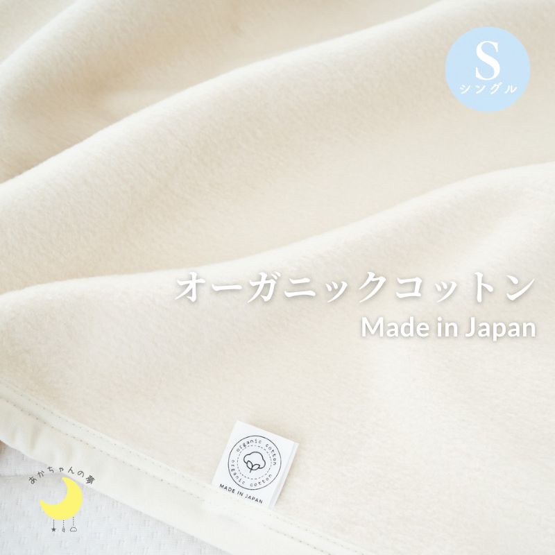 日本製 オーガニックコットン 綿毛布 シングル 140×200cm ピュアコットン 暖か 保温 丸洗いOK 洗える アレルギー ウォッシャブル 泉大津産