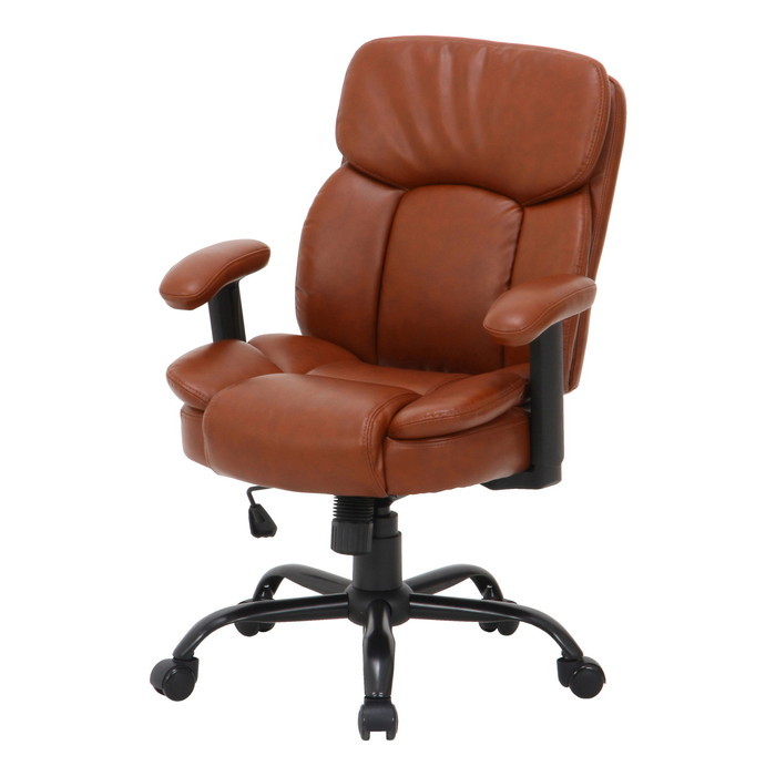 高級感のあるPUレザーと肉厚クッションで、包み込まれるような極上のくつろぎを感じられる、プレジデントチェア。ロッキング機能内蔵で、座ったままのレバー操作で最大約15度座面と背もたれを揺らしてリラックス...
