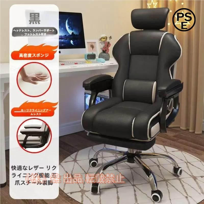社長椅子 ゲーミングチェア デスクチェア 360度回転昇降機能 リクライニングチェア 肉厚座面 事務椅子 錦ブラック ハイバック 人間工学