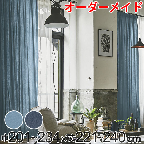 カーテン オーダーカーテン ドレープカーテン デニム ムジ 1.5倍ヒダ 巾201〜234×丈221〜240cm ( オーダー サイズオーダー オーダーメ