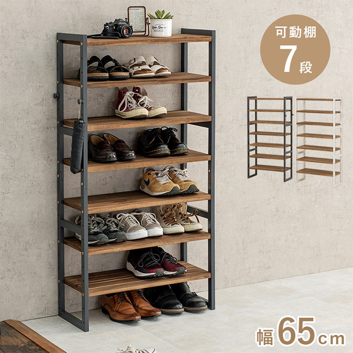 シューズラック 7段 幅85cm 靴箱 シューズボックス おしゃれ 下駄箱 オープンラック 天然木 ディスプレイラック 飾り棚 木製棚 可動棚 棚板 居間 玄関