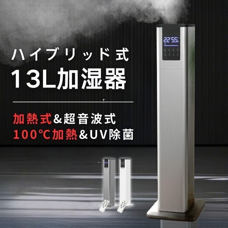 加湿器 加熱式 大容量 13L 業務用ハイブリッド スチーム式 超音波式 静音 UV除菌 タワー 大型 高級超音波式 大型加湿器 上から給水 人気