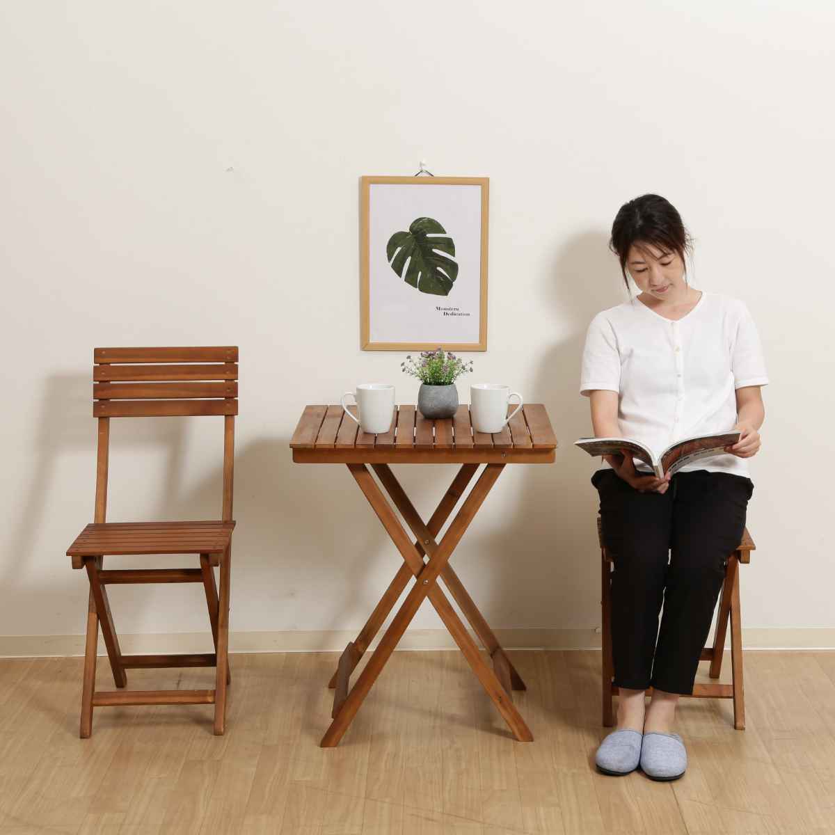 折りたたみテーブル 机 チェア (イス 椅子) セット 約幅70cm ダークブラウン 木製 アジャスター付き 組立式 折りたたみデスク (テーブル