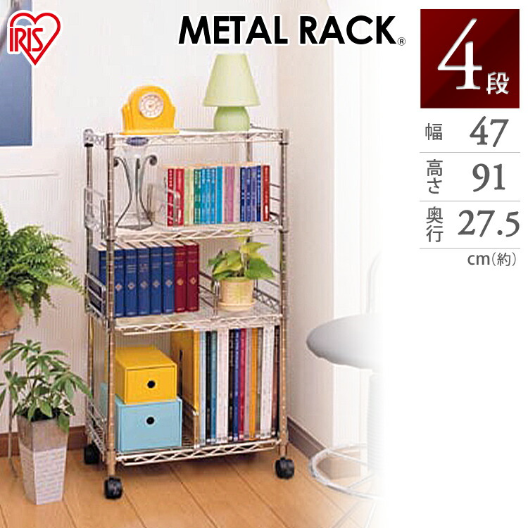 棚 スチールラック メタルラック 4段 CMM-75144B カラーメタルラック ウッドボード付き シェルフ 北欧 アイリスオーヤマ ラック メタルシ