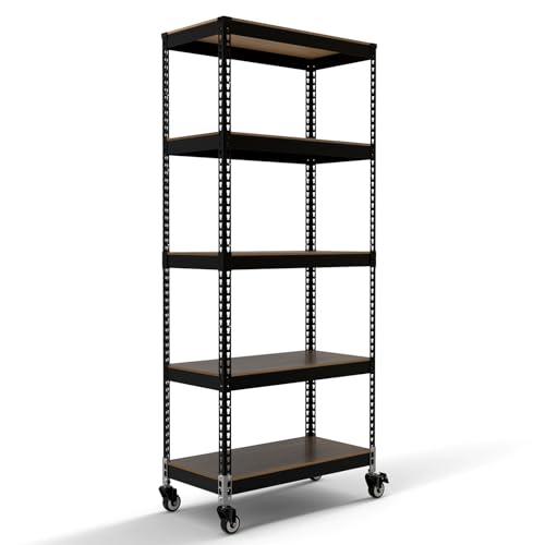 [ドリームウェア] ラック 棚 5段 大型キャスター付き 頑丈 耐荷重120kg シェルフ・キャスターセット 幅81×奥行41×高さ191cm [メタル & ウ