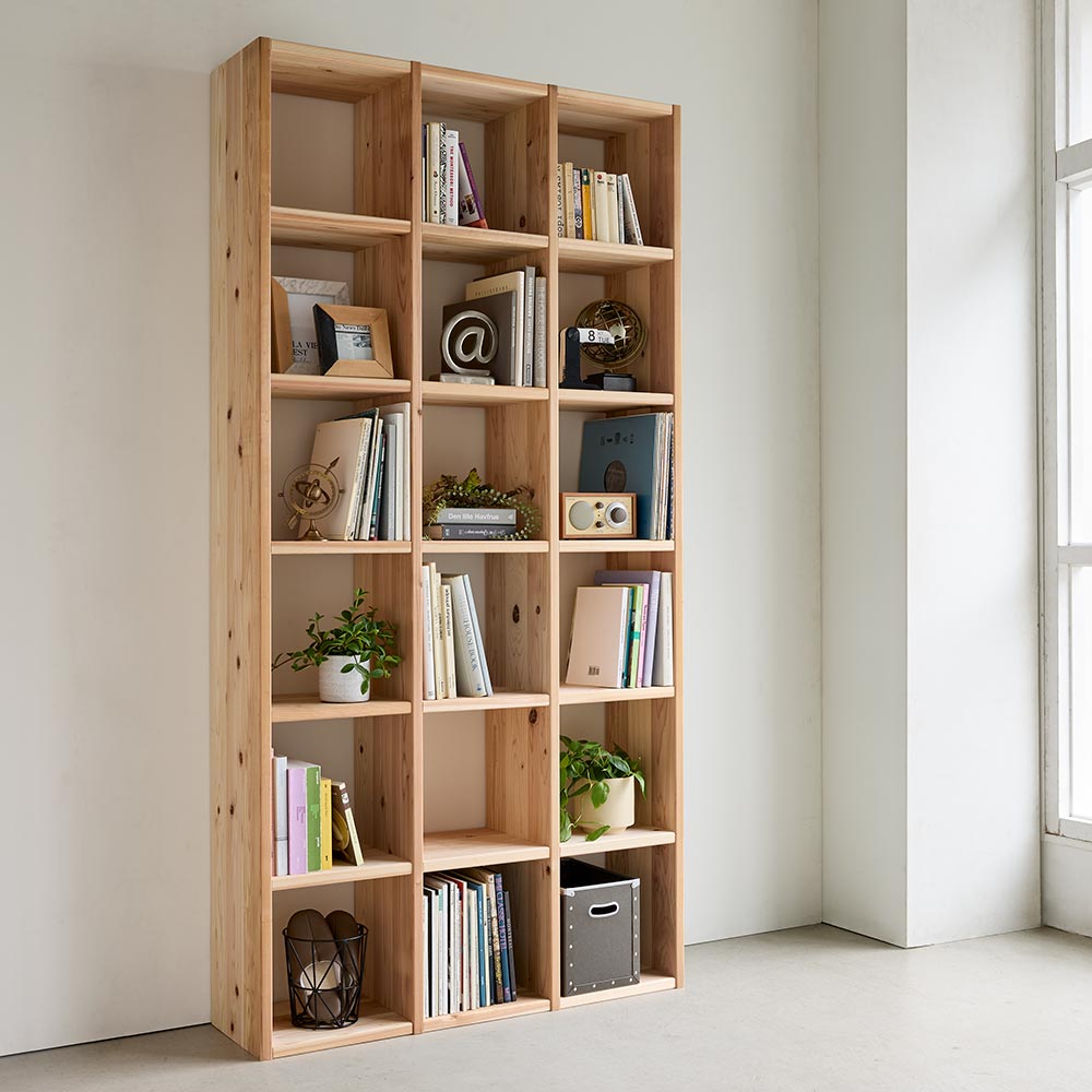 国産杉シェルフ 横3列×縦6段(幅111.5cm高さ220cm) 本棚 ラック シェルフ 626318