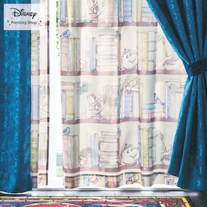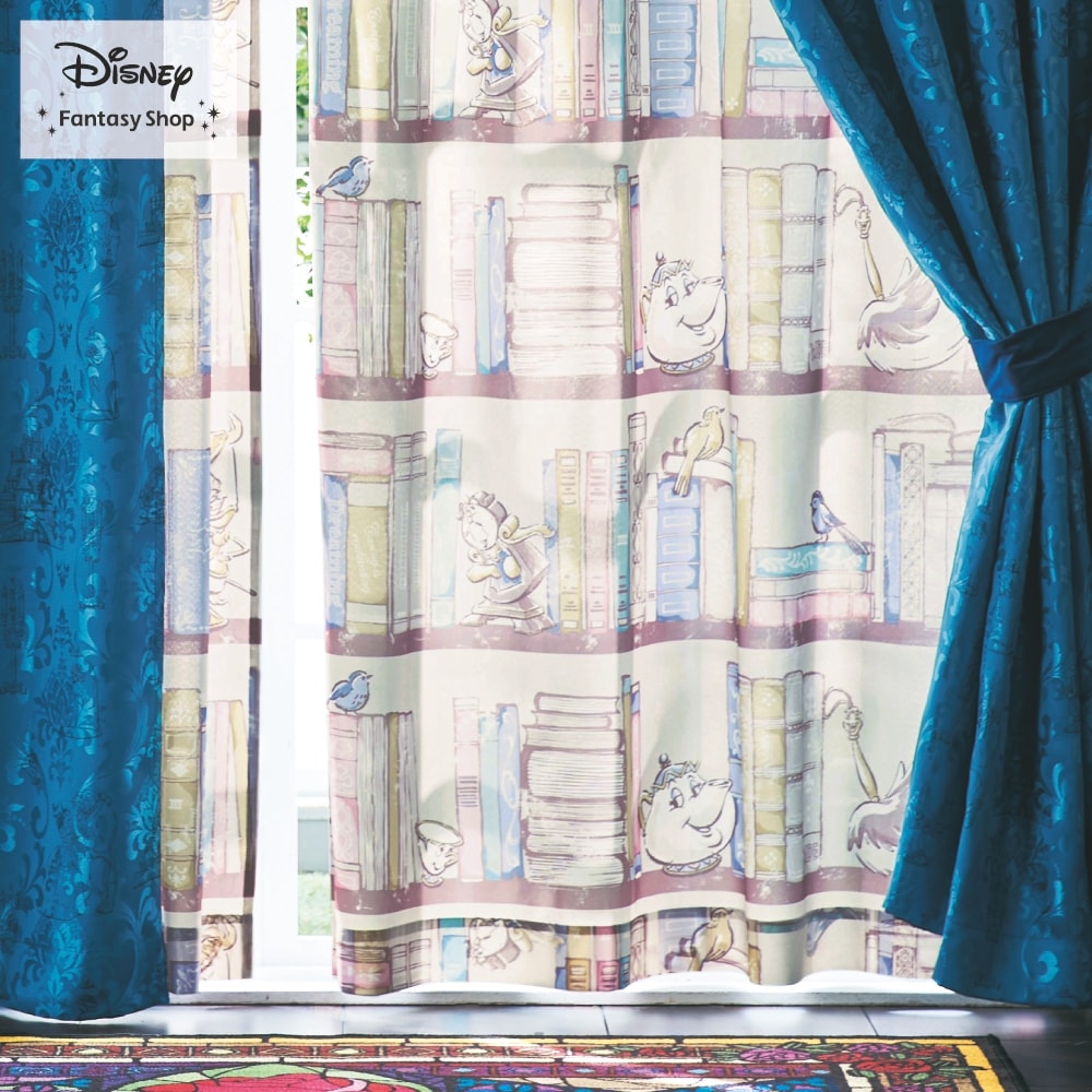 【ディズニー/Disney】本棚デザインの裏地付き遮光カーテン「美女と野獣」