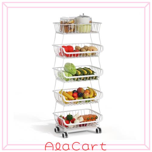 BQKOZFIN キッチンワゴン ラック 5段 キッチン キッチンシェルフ 収納カート 5段 スタッキングバスケット キッチン 収納家具 ワイヤーバ