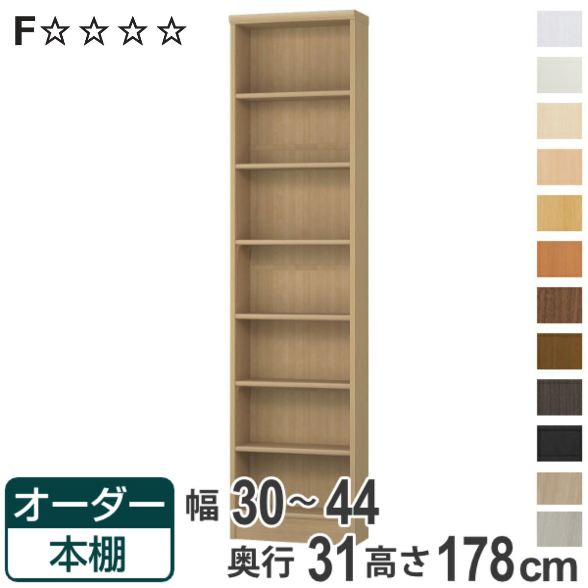 オーダー本棚 標準棚板タイプ 幅30-44cm 奥行31cm 高さ178cm ( 本棚 オーダー オーダーメイド 収納棚 壁面収納 日本製 書棚 ラック フリ