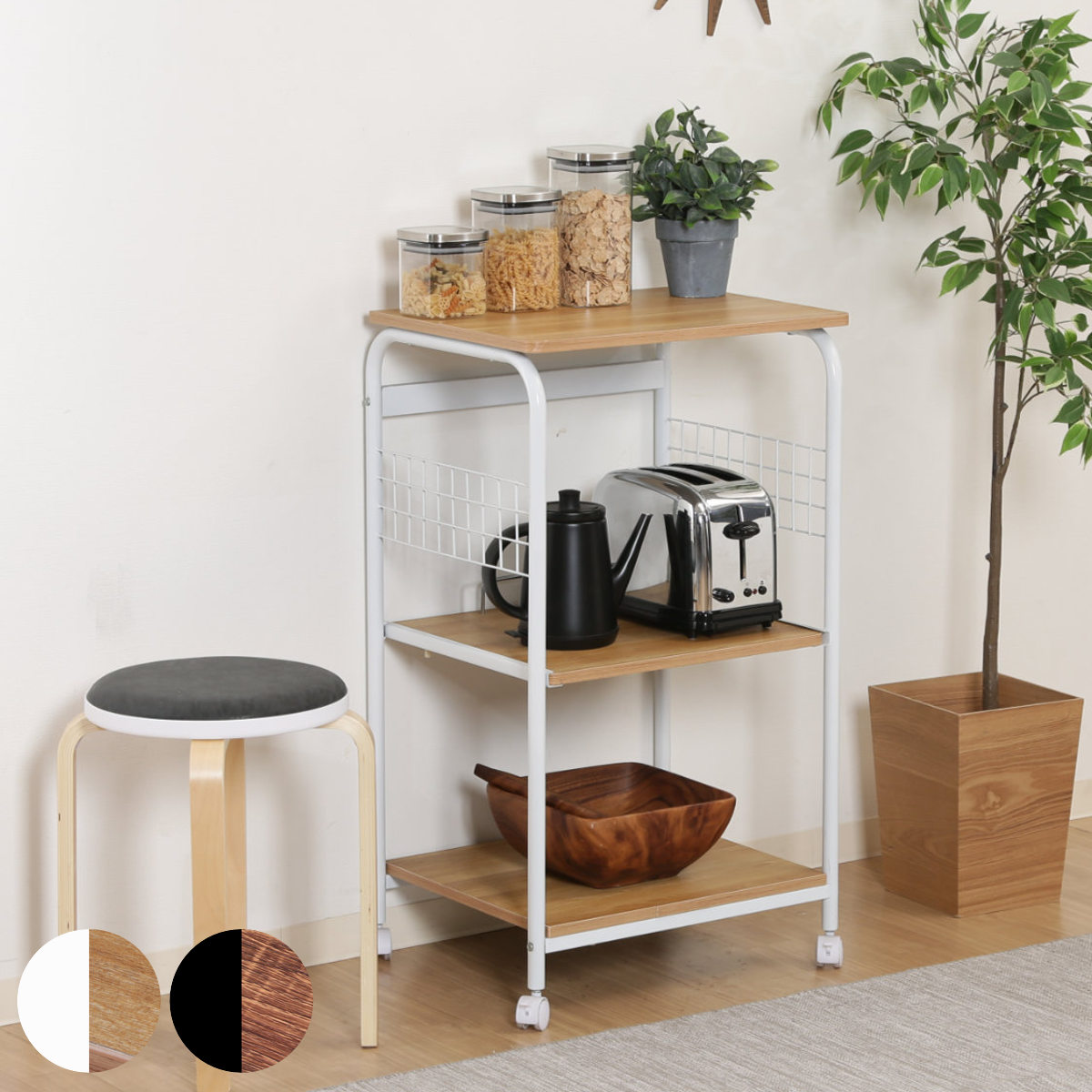 レンジ台 上棚付き スリム キャスター付き 幅48 奥行41 高さ141cm レンジボード レンジラック キッチンラック ラック 棚 キッチン収納 背面収納 キッチン 賃貸 一人暮らし ワンルーム 隙間...