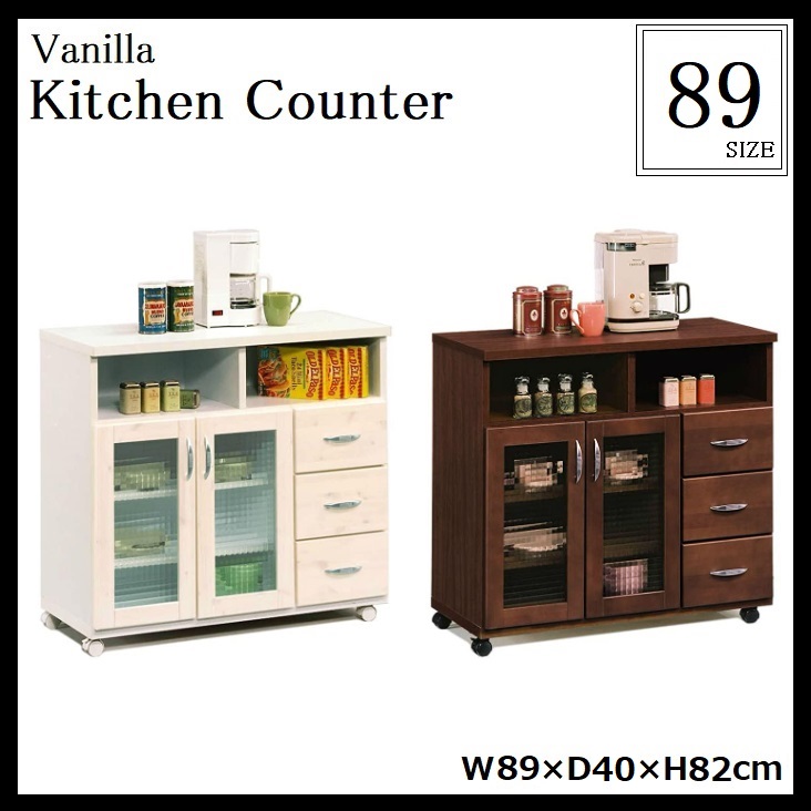 バニラ キッチンカウンター 幅89cm 日本製 完成品 レンジ台 キッチンボード キッチン収納 キッチンラック キッチン ワゴン 食器棚 ダイニ