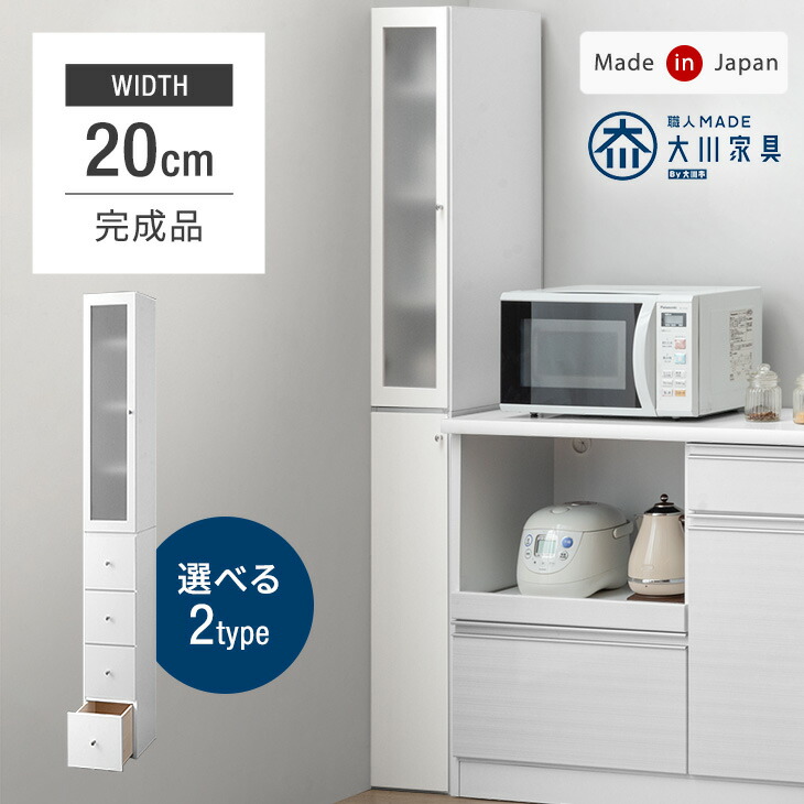 隙間収納 幅20cm 選べる2タイプ! 国産 完成品 大川家具 食器棚 スリム 省スペース キッチン収納 日本製 収納 収納棚 すきま収納 すき間収