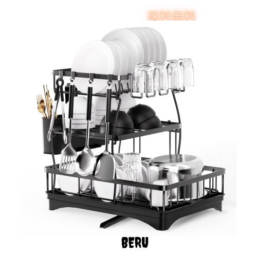 水切り ラック 食器 水切り カゴ 3段 大容量 収納 ラック【360度回転なトレー・箸立て・カップホルダー ・まな板立て・4枚の物掛けフッ