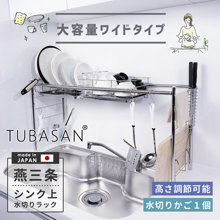公式ショップ 正規品 水切りラック シンク上 ワイド 大容量 ステンレス 水切りかご 2個タイプ 燕三条 伸縮 高さ 調節 キッチン まな板 グラス 収納 送料無料 シンク 渡せる おすすめ 日本製