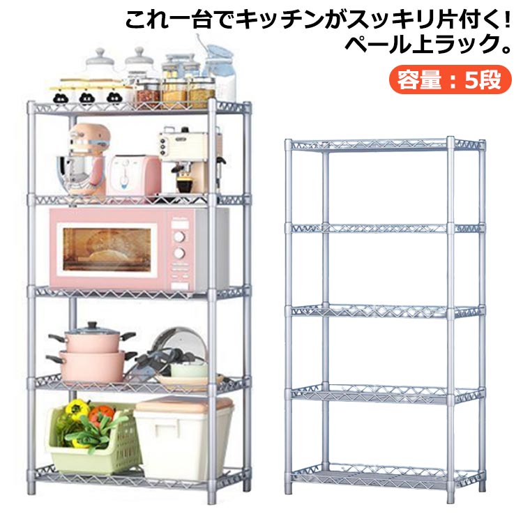 奥行35 北欧 大型レンジ対応 5段 キッチンラック スチールラック ペール上ラック 幅56 キッチン収納 棚板付き レンジ台 ゴミ箱 キッチン