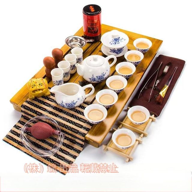 中国茶器 セット セラミック 無垢材 株式会社錦 トレイ ポット 27ピースティースーツ