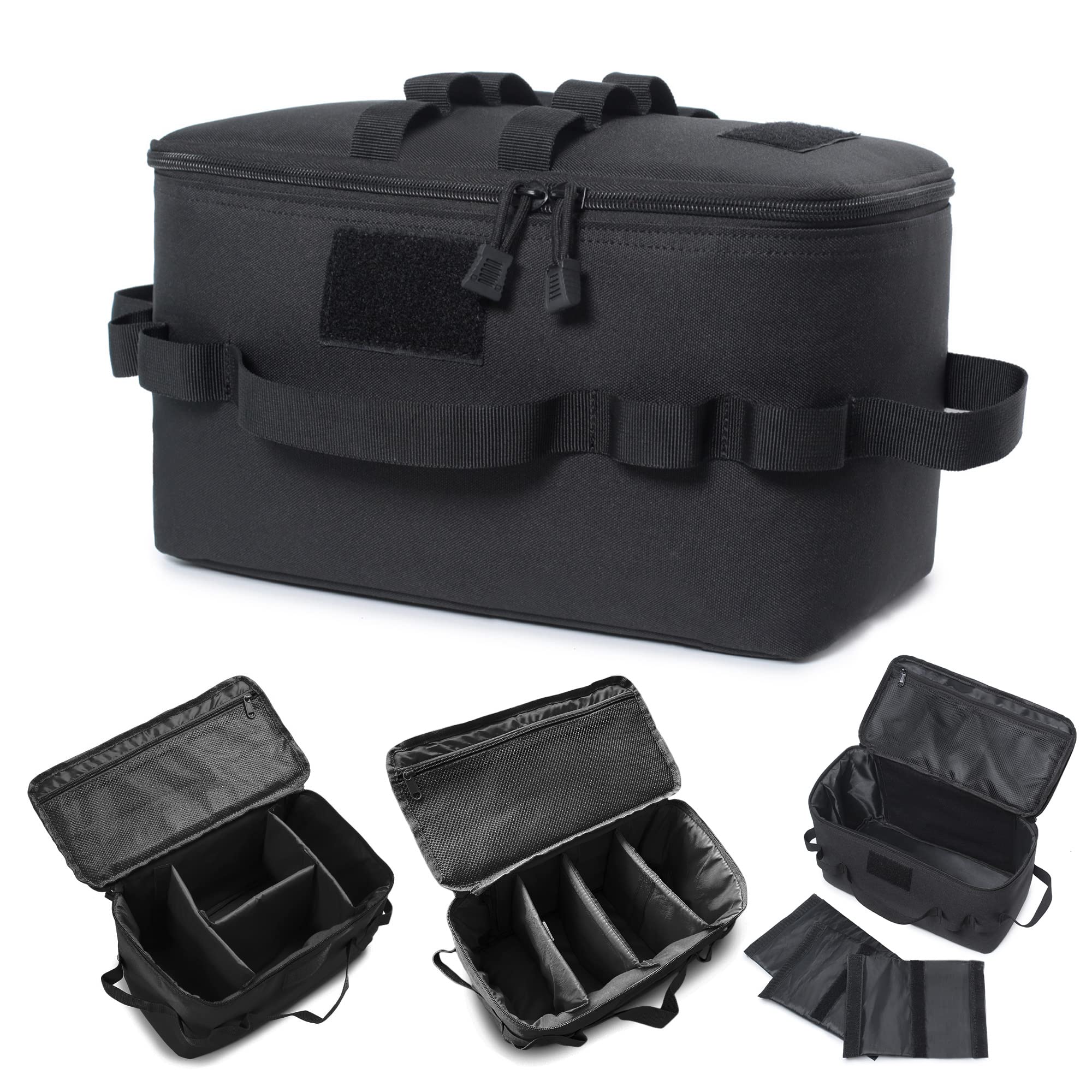 ギアケース 収納ボックス アウトドア キャンプ用品 ソフト コンテナバッグ 衝撃吸収 【仕切り板3枚】 コンパクト 軽量 ペグ (ブラック)