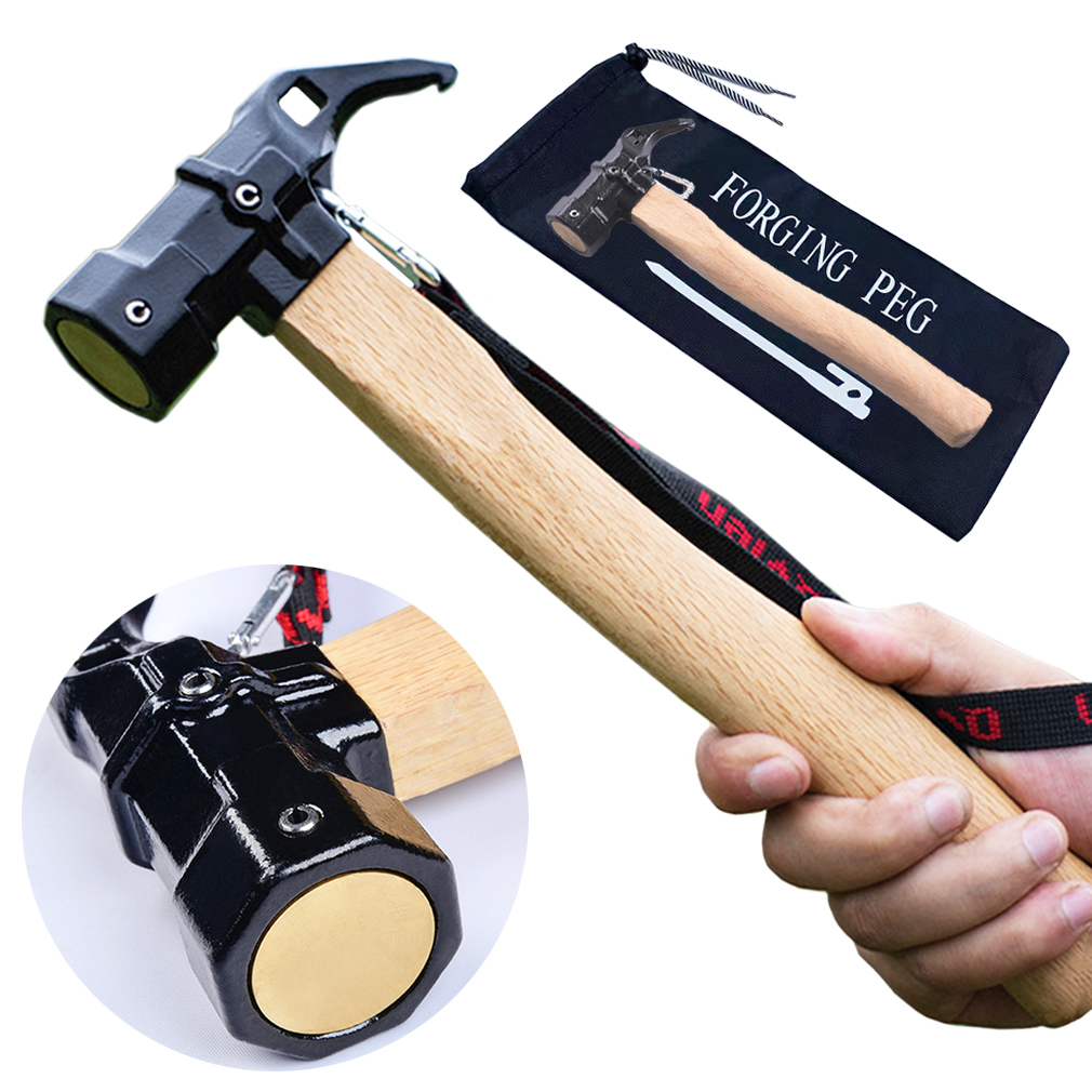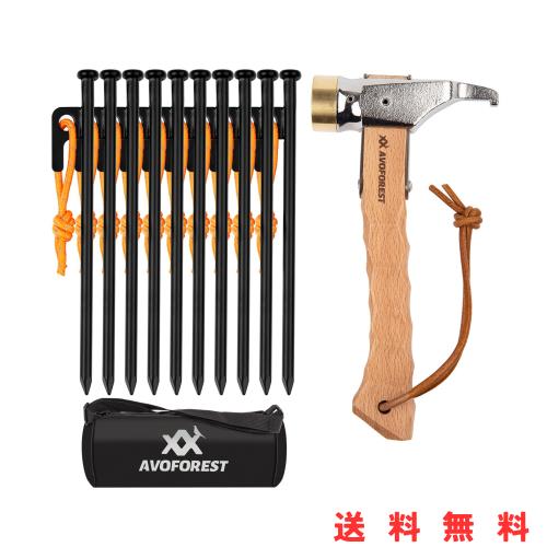 AVOFOREST ペグハンマー + ペグ20CM 10本付き ペグハンマーセット キャンプペグ 反射材入りロープ付き 高炭素鋼製 ペグ打ち ペグ抜き 真