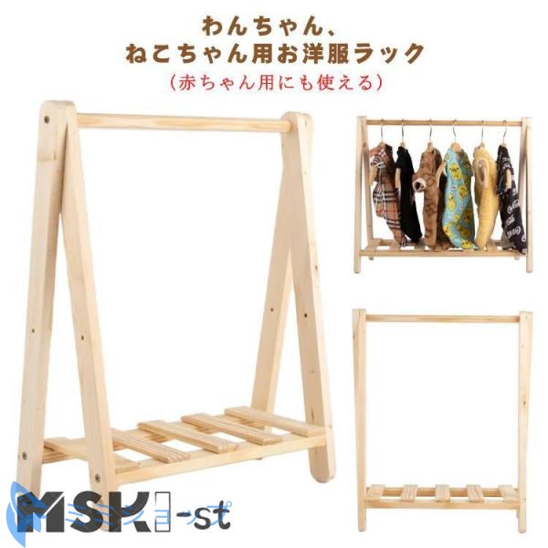 ペット用 ハンガーラック 犬 猫 ワードローブ お洋服ラック 木製 2段 棚付き 中型犬 小型犬 洋服 猫服 犬服 収納 片付け ペット服 ポール