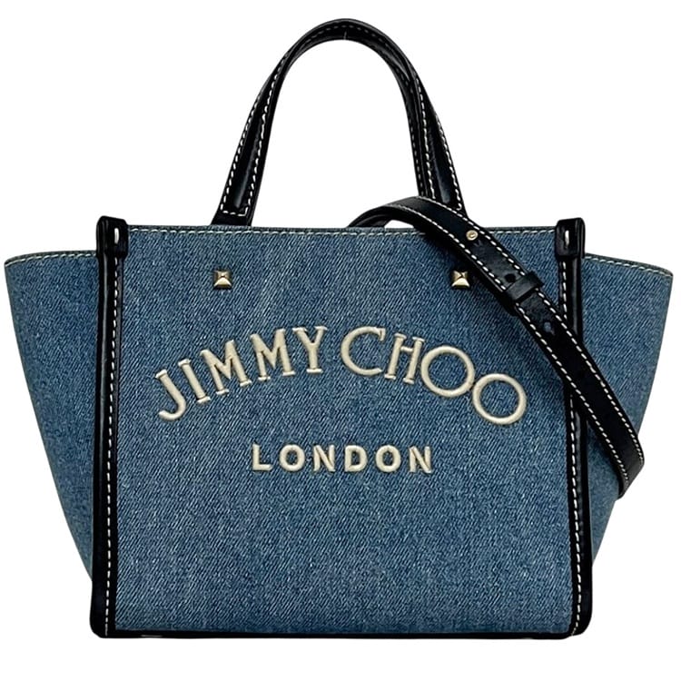ジミーチュウ 2way バッグ デニム ブルー ネイビー JI1630AW001266 美品 ウォッシュデニム レザー 中古 55QZSG JIMMY CHOO ハンドバッグ